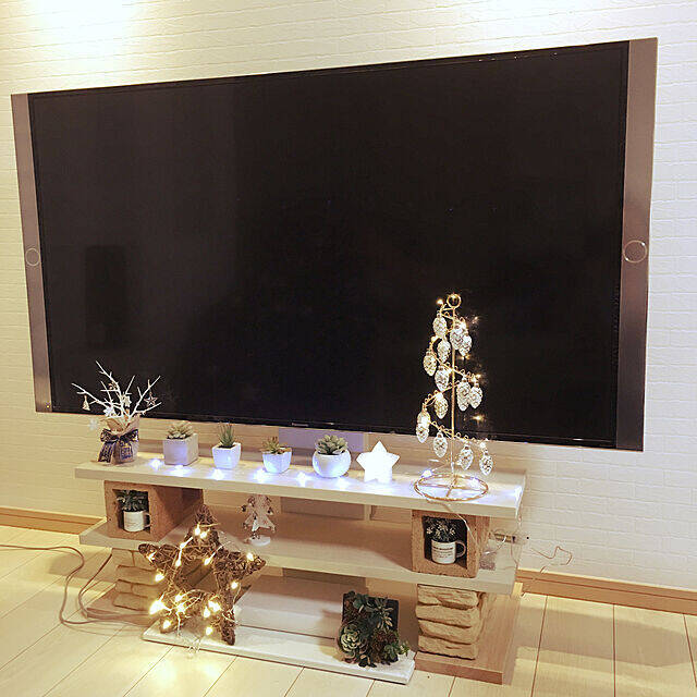 テレビを置くのはもちろん、飾り棚を設置しデコレーションで華やかさをプラスするのもおすすめです♡視線を集めやすいテレビまわりは、お気に入りの雑貨を飾ってインテリアをランクアップさせましょう。ユーザーさんのセンスあふれるディスプレイ選びで、爽やかさと木の風合いがマッチした癒しの空間に。