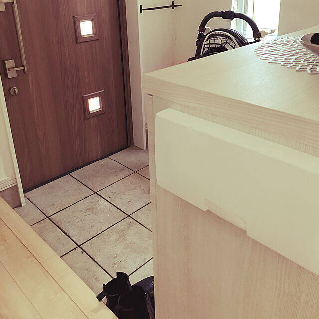 Hanaさんは、玄関にマスクを常備しておける収納を作っています。100均のキッチン消耗品ケースを、靴箱の側面に両面テープで貼り付けて設置しました。デッドスペースを活用して、さっと取り出せる使い勝手のいい収納にできていますね。