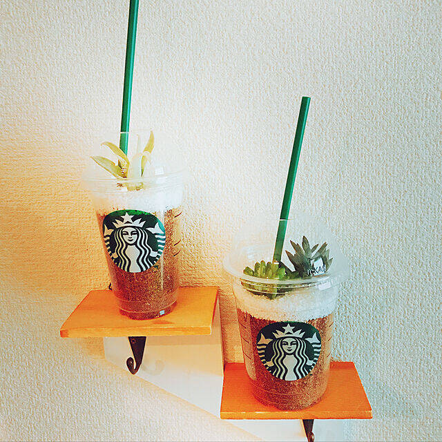 kaRoomさんは、スターバックスのプラスチックカップを活用して、多肉植物のディスプレイに使っていました。フラペチーノのような配色のカラーサンドを入れてストローを差せば、とびきりキュートなスターバックスディスプレイの完成です。