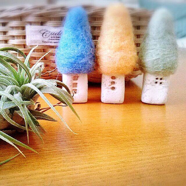 こちらのユーザーさんは、土台を木かる粘土で、屋根を羊毛にして、家を作りました。屋根部分の優しい質感とパステルカラーに癒されます。ユーザーさんは、クレヨンで描いたような雰囲気になることから、クレヨンhouseと名付けられたそうです。ピッタリなネーミングですね。