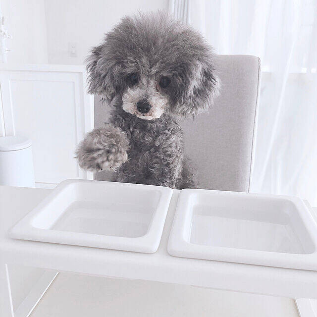 mamita8さんのお宅では、アクリル製のフードボウルを使われています。ボウルもスタンドもクリアで、清潔感がありますね。お部屋の雰囲気を壊さず、インテリアにマッチします。手前側が低くなっていて、食べやすさも◎です。