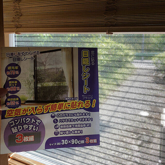 外からの視線と日差しが気になり、ブラインドを閉めっぱなしだったというこちらの窓。目隠しシートを貼って、中からは見えても外からは見えない工夫を施していました。紫外線カットや断熱効果などもあり、暑い季節を快適にしてくれます。ブラインドを開けて明るさの調整もしやすくなりますね。