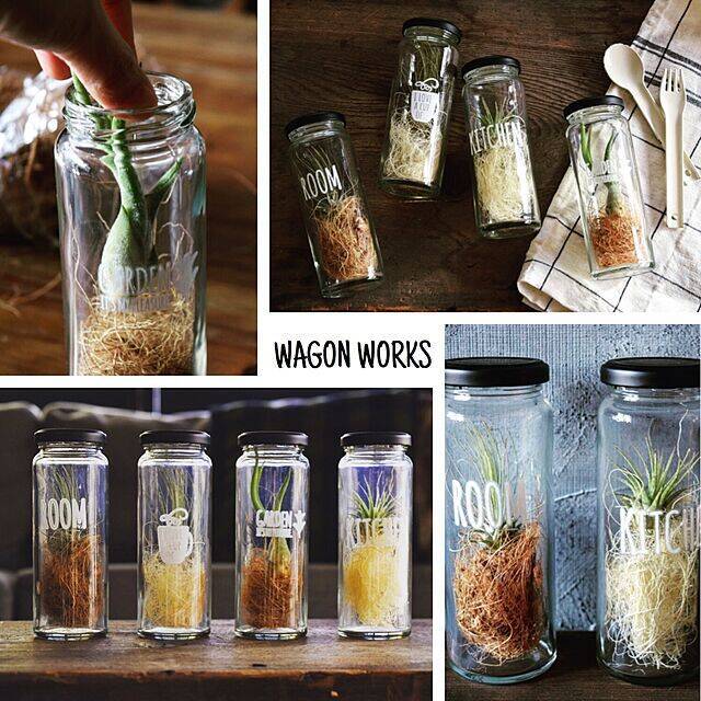 chikoさんがご紹介してくれたのは、オール100均材料で作れるテラリウム風ボトルです。ヤシの繊維をビンの下半分ほどに入れ、その上にエアプランツをポンと置くだけで完成してしまうアレンジはすぐにマネできますね。縦型でフタのあるビンはドリンクボトルのようでキュート。ずらりと並べれば可愛さも倍増ですね!