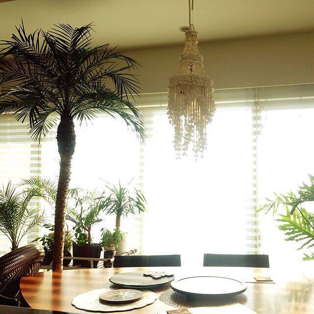 ビーチを連想させるヤシ科の観葉植物は、カリフォルニアスタイルにぴったり!mikinkoさんはダイニングのシンボルツリーにフェニックス・ロベリニ―を選びました。高い位置に葉があるので、大きくても邪魔になりにくいそうですよ。