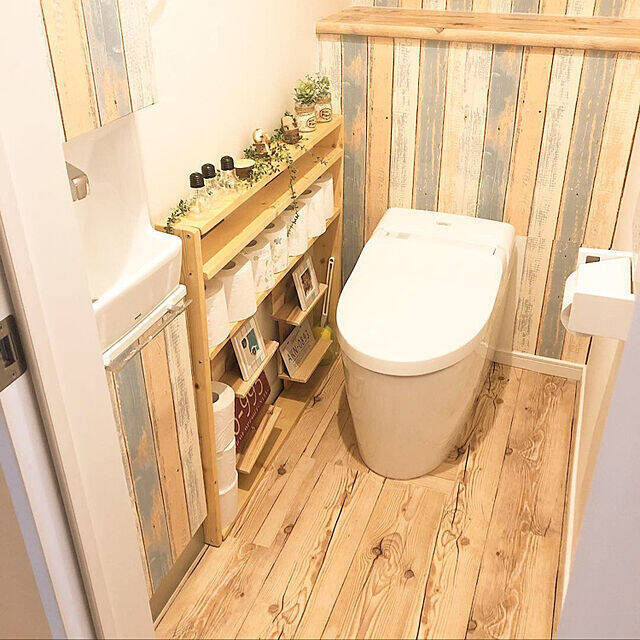 mamorysさんはトイレにリメイクシートを貼って、白い床から木目調にイメージチェンジされています。ランダムに節の模様がついているところもリアルですね!明るくナチュラルな空間は、清潔感があって居心地が良さそうです。