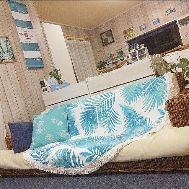マリンスタイルのお部屋作りに取り入れている方も多いラウンドタオル。yuuki1003さん宅でも、しまむらで購入されたというターコイズカラーのラウンドタオルがコーディネートに使われていましたよ!ソファのアクセントに添えるだけで、マリンスタイルなリビングインテリアに近づけます。