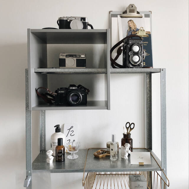 インテリアにシェルフを取り入れるとき、テイストやデザイン、サイズ……いろいろと悩むものです。インテリアの邪魔をしない存在感、並べたものが映える背景、使いやすい高さ、名脇役に徹するKinggiewuさんの愛用品は、スッとそんな条件を満たしていきます。コストもミニマルなのがまた嬉しいですね♪