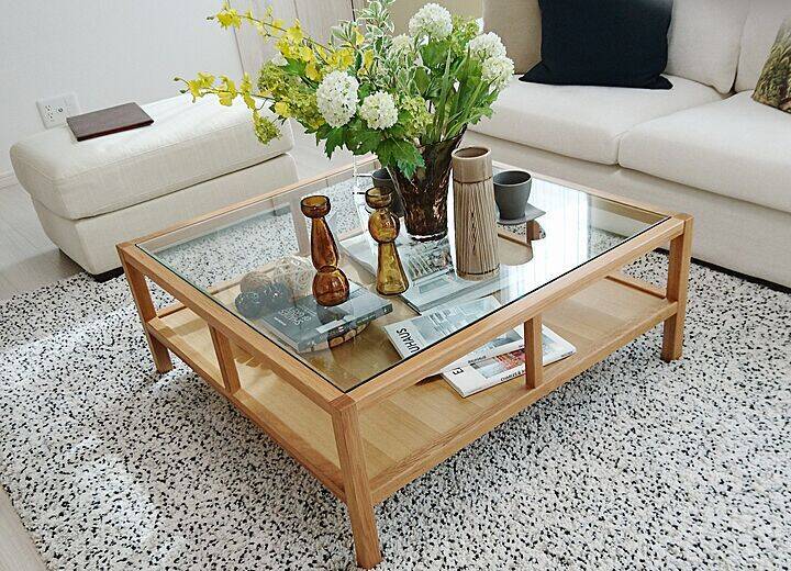 家具選びは、大きなものほど悩みます。存在感があり、インテリアへの影響も大きいので、ほとんどの方が吟味し熟考を重ねるのではないでしょうか。takahiroさんの選んだセンターテーブルは、シンプルです。けれども、心地よく存在感を放ち、インテリアを洗練するアイコンにもなります。そして、木の優しい風合いとガラスの透明感で、ディスプレイ効果も格段に盛り上げてくれます。