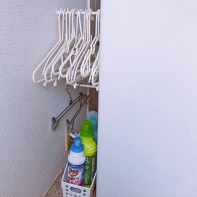 ちょっとした壁との隙間があれば、つっぱり棒をつけて、収納場所に変身させることができます。こちらでは、ハンガーを掛けて収納されています。意外と悩みがちなハンガーの置き場の解決法になりますね。高さも手に取りやすそうです。