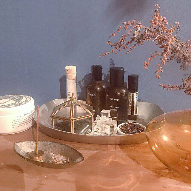 「柑橘系のスモーキーな香りアイテムが好きで、サンタマリアノッヴェラ、Aesop、Bury、THREEを集めがちです。お香は、ロンドン蚤の市で購入したマドレーヌ型に置いて、天候や気分で使い分けています。このマドレーヌ型は使い勝手が良いので、いくつか持っています。」