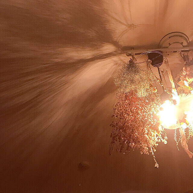 「表情のある光の影をつくりたくて、照明をシャンデリアっぽく演出しています。複数のライトを飾りたい願いを叶えてくれたダクトレールには感謝しかないです(笑)ちなみに、銅のランプシェードは自作しました。ドライフラワーと組み合わせながら、遊んでいます。」