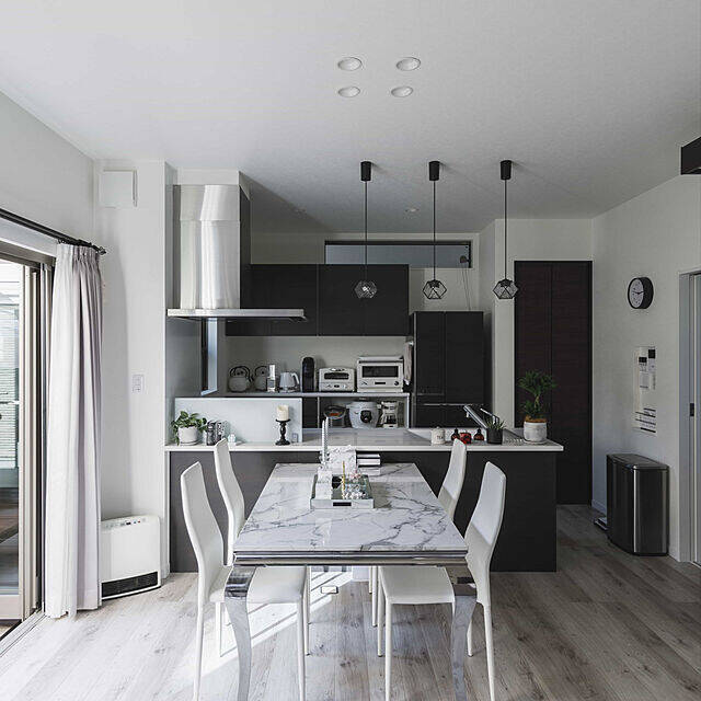 インテリアをスッキリさせて見えるポイントは、カラートーンをそろえることです。こちらのririさんのダイニングキッチンは、ホワイトをメインに使ったコーディーネートをしています。カーテンや小物からキッチン家電までカラーを統一していて、ごちゃごちゃしがちなキッチン周りも見惚れてしまうほど美しいですね。