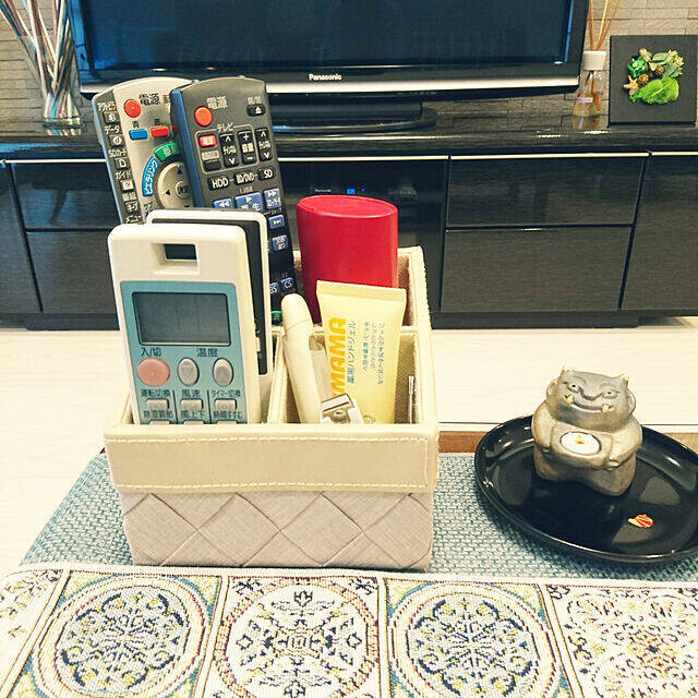 リビングは、1日の最も多い時間を過ごす部屋。老眼鏡は、手に取りやすいところに準備しておきたいですよね。sakamo0829さんはリビングのリモコンケースを使い、リモコンや体温計などよく使うものと一緒に老眼鏡を収納しています。深さがあるので、縦向きにしてスッキリ収納できますよ。