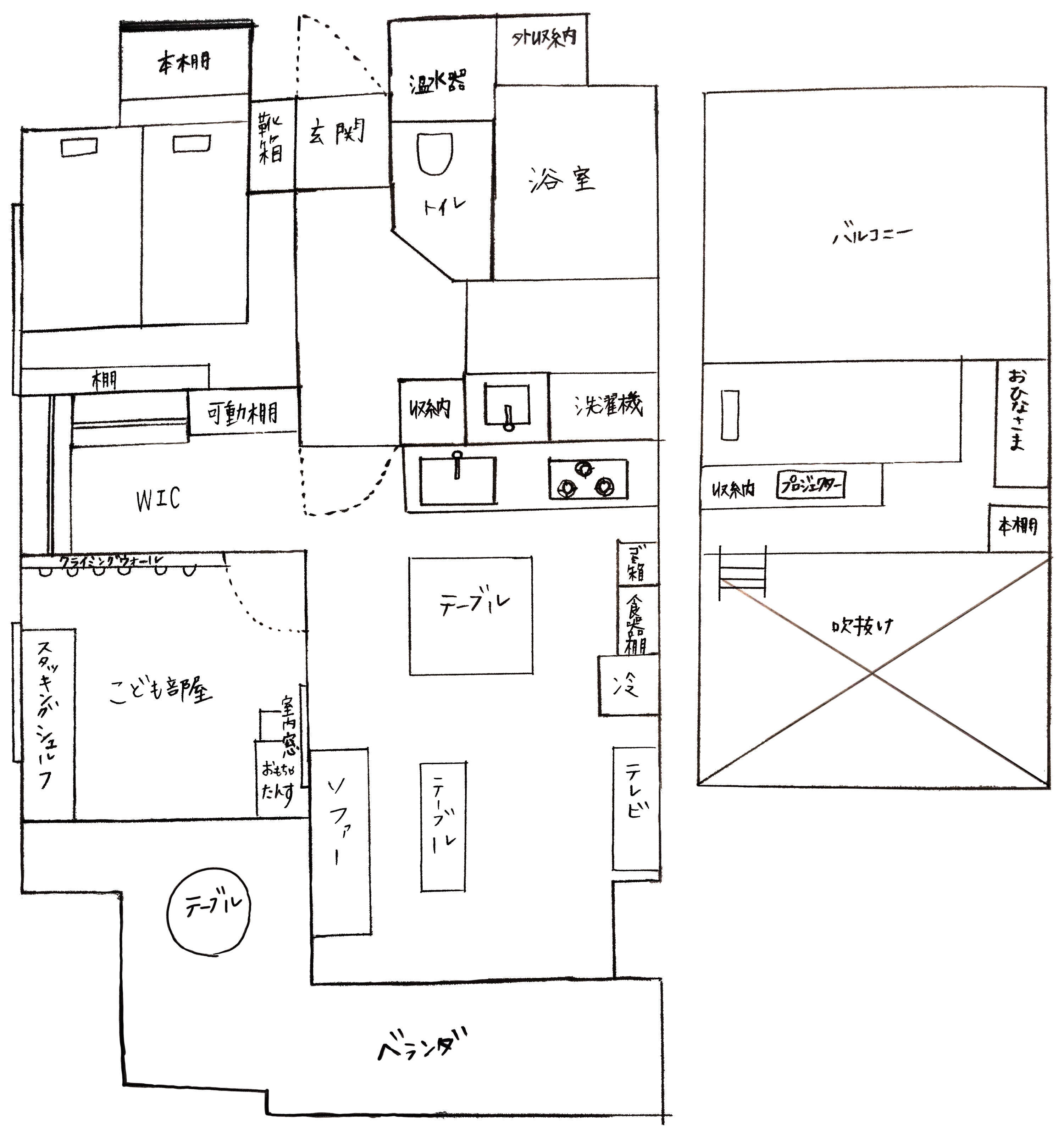 2020年3月に、8年ほど賃貸で住んでいた部屋がまさかの売りに出されていて購入!同時に建築士の友人にリフォームしてもらいました。53m2という小さな部屋ですが、家族3人それぞれの好きな場所をつくることができました。