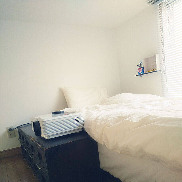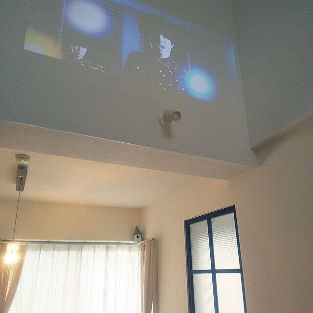 キッチンの上、ロフトにはプロジェクターが設置されています。投影されるのは、その正面にある吹き抜けの壁。こちらは、リフォームの際にプロジェクター用の素材に変えたそうです。そのため、ダイニング・キッチン・ロフトは、抜群の画質で映像を楽しめるとっておきの場所だとyamamaさんは語ります。このプロジェクターは、特にご主人のお気に入りで、就寝前の『深夜食堂』が癒しの時間だとも教えてくれました。