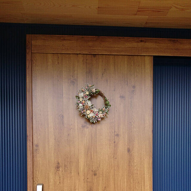 ネイビーのガルバリウムの外壁にどっしりと重厚な木の扉、シンプルな組み合わせだからこそ、より強い印象を感じる佇まいで栃木県に建つ平屋がmonchan0921さんご夫婦のお住まいです。間取りも1LDKとシンプルで、玄関ホールにあるドアを開くと、すぐにゆったりとしたリビングが迎えてくれます。天然木をたっぷりとあしらった内装の温もりを盛り上げるように、家具も木製中心のインテリアが特徴的。ちなみに、テーブルやテレビ台など、木製家具の多くはご主人のDIYなのだそうです。本格的な仕上がりからは、その丁寧さがにじみ出ていますね。