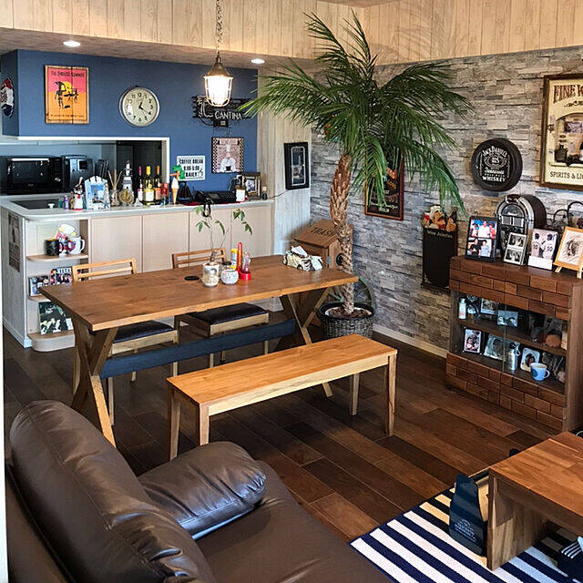 ウッド調の空間に観葉植物を置いているGTOtsuka130さん。パームツリーという種類で、ビーチで見かけるイメージのある植物です。木の素材を多く取り入れている空間なので、植物がとてもよく合いますね!海沿いにある海の家のようなリアルな完成度と、カフェのような雰囲気がすてきです。
