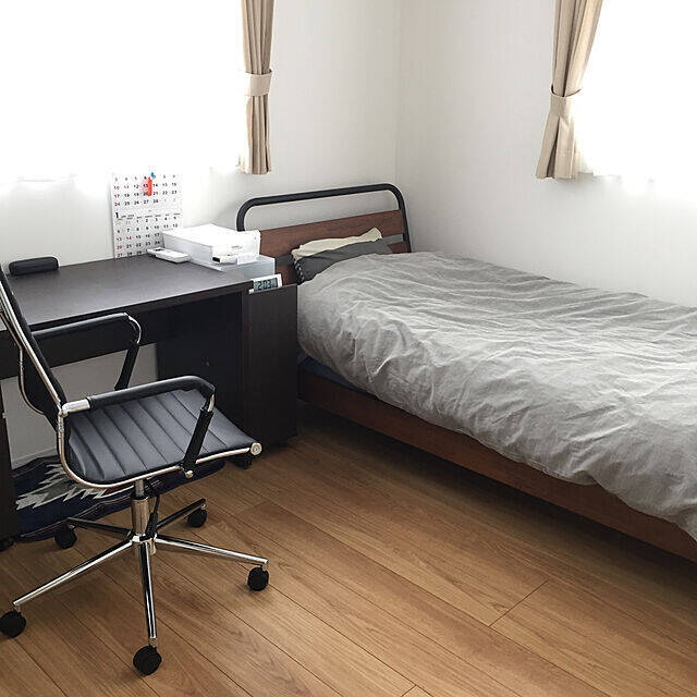 こちらのユーザーさんが息子さんのお部屋でつかっているのは、ニトリのシングルベッドフレーム。ブラウンの色合いが落ち着いた印象でシンプルなお部屋にぴったりですね。大人っぽいお部屋に仕上がっています。