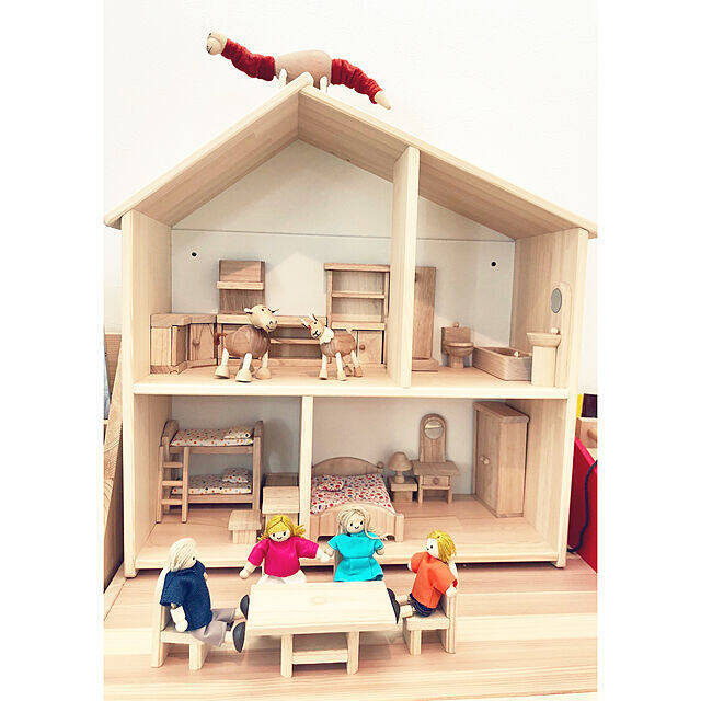 木のおもちゃプラントイの人形や家具と、IKEAのドールハウスを組み合わせて人形遊びを楽しんでいるctscandyさんの実例です。遊んで楽しく、ディスプレイしても素晴らしい、長年楽しめる良い贈り物をお子さんの誕生日にされたんですね。木製素材のおもちゃを組み合わせれば統一感が出ます。