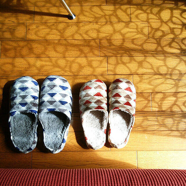 ニトリの「Nウォーム(吸湿発熱)」シリーズのスリッパを愛用しているユーザーさん。ふわふわの質感もお気に入りポイントだそうです。トレンドのキリム柄は、おうち時間をより楽しくしてくれますね。