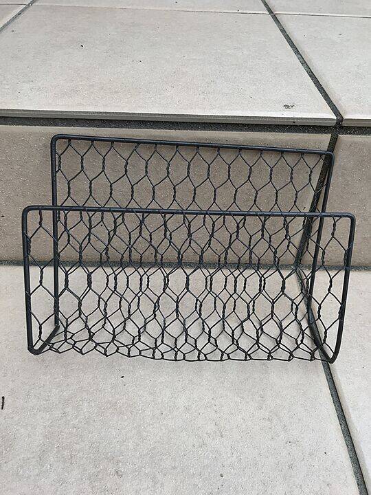 いい具合に曲げられたら、好きな植物を水苔等で根を巻いて収めてください。ちなみに、写真手前は、ワイヤーメッシュラティスLサイズを使用しています。また、奥にあるものはseriaのガーデンハンギングポットメッシュMをそのまま使っています。