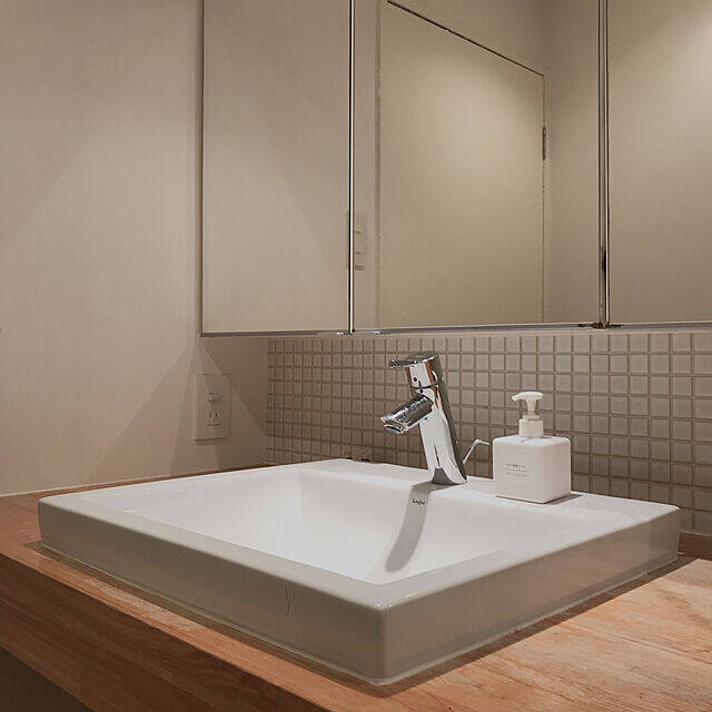 シンプルな見た目と使いやすさに定評がある、無印良品。こちらのハンドソープを洗面台に置いているのは、Sawawaさんです。四角いボトルは「きちんと感」があり、凛とした洗面台に見えますね。ハンドソープだけを置いていることも、シンプルな機能美が光るポイントです。