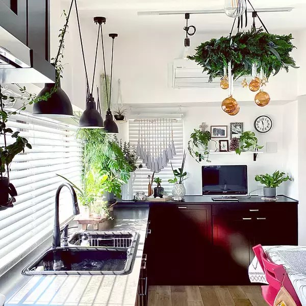 kino102321さん「アドバイスを!と言われると自信がないのですか、何か『好き』を詰め込むとキッチンに立つのが少し楽しくなったり、居心地良くなったりするのかな?と思います。好きなアートをはじめ、スワッグやグリーンや季節のお花を飾るなど、ちょっとした時間と手間を加え重ねながら過ごしていくうち、自分色のキッチンができてくるのではないでしょうか。」