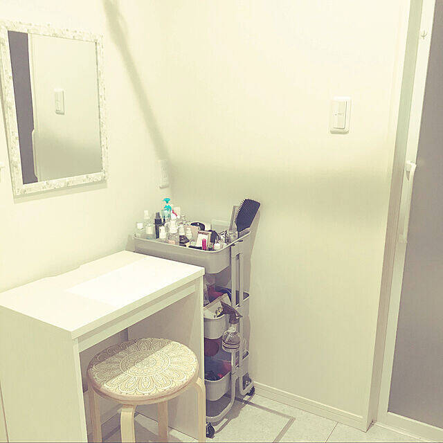 marpontaさんが洗面所で使用されているのは、ホワイトのスリムデスクです。白を基調とした整えられた空間にマッチしています。奥行きが39.5cmのスリムデスクは、壁側にコードスリットが設けられているため使いやすさも抜群。ドライヤーや美顔器を使用したい洗面所にぴったりですね。