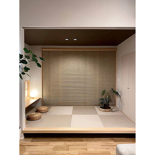 こちらのユーザーさんは色違いの畳を格子柄に敷いて、ホテルの和室を思わせる上品な小上がりを実現しています。右奥のグリーンと左側のスツールで落ち着いた癒しの和室が完成していますね。ミニマムななかにこだわりを感じます。