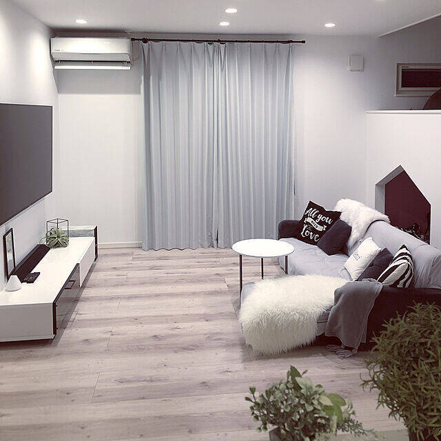 グレーインテリアとホワイトオークの床で、リビングを構成しているKanaさん。グレーの落ち着きのあるシンプルさとホワイトオークのナチュラルさに統一感があり、とてもバランスのとれた組み合わせですね!スッキリとした空間に、ホワイトオークの程よいアクセントを感じられるリビングです。