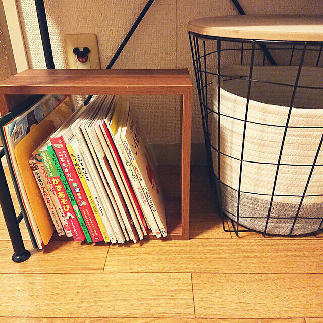 licoさんは、ユニットボックスを絵本棚として活用されています。こちらのボックスは、異なる大きさが3つセットになっていて500円だったそうです。これがあれば、ちょっとした空きスペースも絵本収納に大変身ですね!