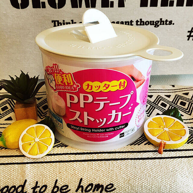 tomo60さんはダイソーでみつけたカッター付PPテープストッカーを使っています。カッターがついているのでハサミを用意する必要がない、ストレスフリーな商品です。紐もからまりにくいメリットがあるそうですよ。白い容器なのでシンプルな見た目を楽しんでもいいですし、自分好みにデコってもいいですね!