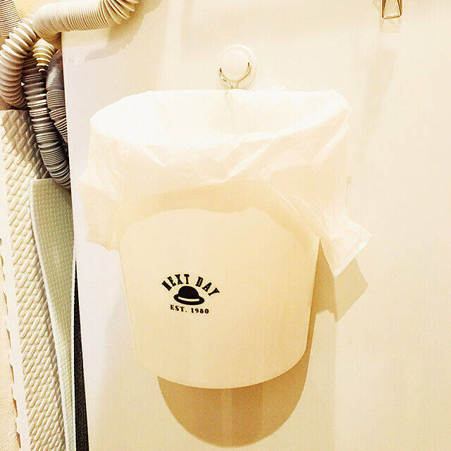 壁面に掛けやすい、半円型のゴミ箱です。iK...さんは洗濯機の前面に、フックを取り付けて掛けられています。掃除のときに持ち上げる手間がなく、洗濯機のゴミ取りネットのゴミ捨てが楽になったそうです。シンプルなので、このようにステッカーで、デコレーションするのも楽しいですね。