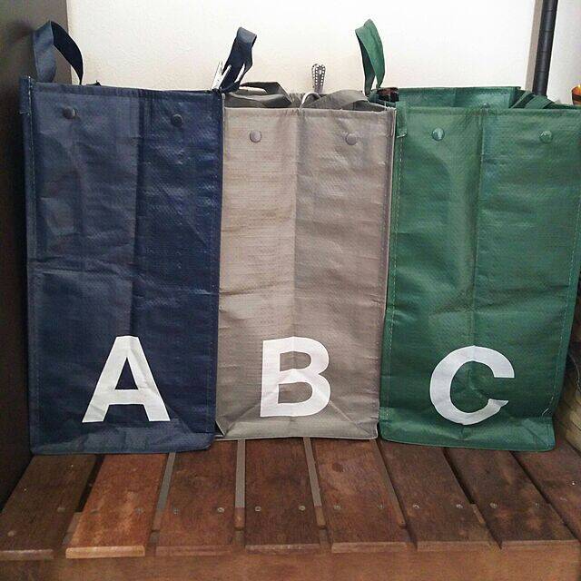 Kuroriさんは、資源ゴミを軽い袋に分別されているそうです。取っ手のある袋は、そのまま持ち運ぶこともできて便利とのこと。3色の色違いでアルファベットの書かれた袋は、ゴミの分別もしやすそうですね。落ち着いた色味で、お部屋にもなじんでくれそうです。