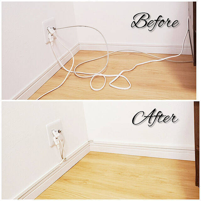 ダイソーの配線カバーを付けたsugarさんのお宅です。ごちゃつくコードの配線が、カバーを使うことですっきり!見た目が整うだけでなく、掃除機をかけるときなど掃除もしやすくなります。マスキングテープで壁を保護してから貼っているそうで、原状回復もしやすそうですね。