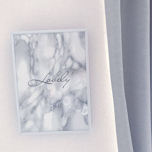 大理石柄の背景に筆記体のプリントされたこちらのポスター。なんとユーザーさんの手作りなんだそうです!白枠のフレームに入った大理石柄はフェミニンなモノトーンインテリアにぴったりですね。壁面をぐっとおしゃれに仕上げています。