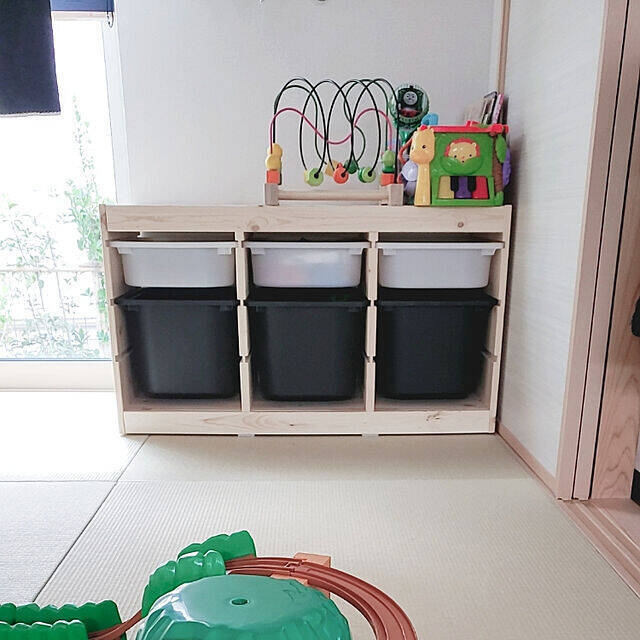 ユーザーさんの中でも人気な、IKEAのTROFAST。収納力もばっちりで、引き出しをプラスすることによってさまざまな収納ができるのが魅力ですよね。玩具棚として使用されいていたmaaiさん宅のTROFASTは、パイン材の明るい質感とやわらかな雰囲気が和室のお部屋にぴったりでしたよ。