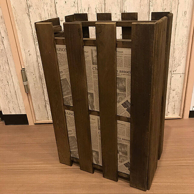 mizukaさんはコーナンの桐すのこを使って、ゴミ箱カバーをDIYしました。英字新聞も貼り付けて、生活感の出やすいゴミ箱をばっちり隠せています。こちらは初めてのDIY作品。そうとは思えないくらい、見事な出来栄えです。