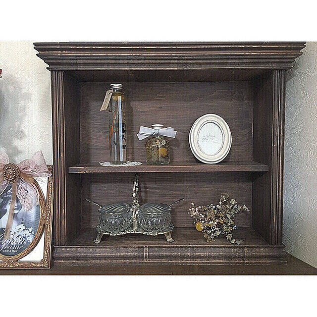 ハンドメイドの棚に、ドライフラワーやハーバリウムを飾っているHisayoさん。とてもアンティークな印象のデザインで、雑貨との相性も抜群ですね!飾りたいものに合わせたテイストに仕上げることができるのも、ハンドメイドの魅力です。好きなものを飾りたいインテリアスペースに、ぜひ取り入れたいですね。