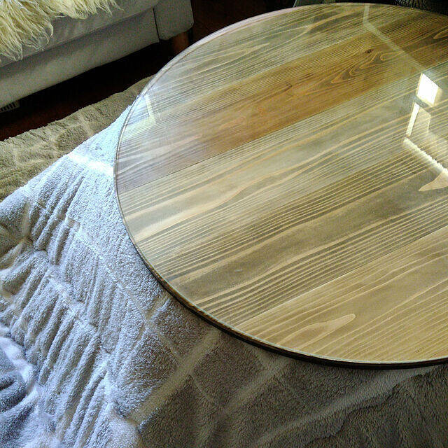 ハンドメイドでこたつの天板を作っているkurumiさん。木製の円形の天板にガラスが重ねられているので、書き物などの際も木目の段差が気になりませんね!温かみのある木の質感と、かわいらしさのある円形が空間を柔らかく感じさせてくれます。はっきりと出た木目も味わいがありますね。