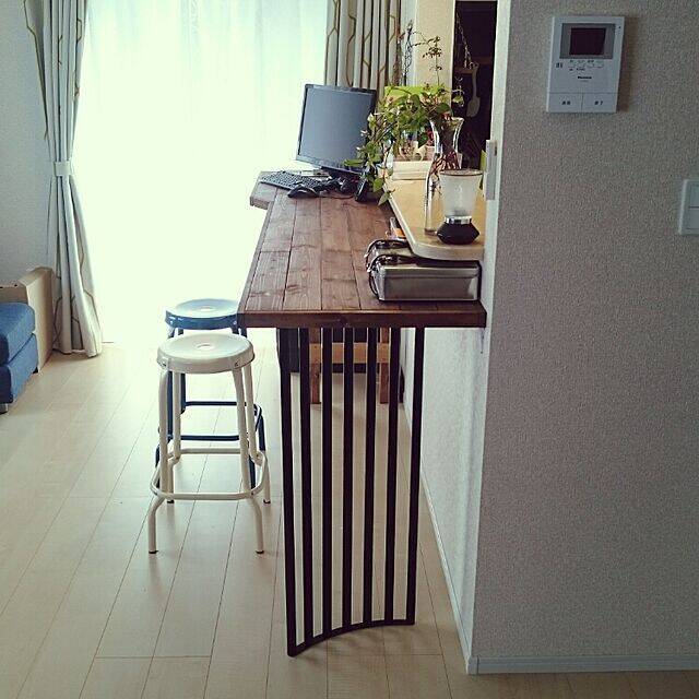 yurijiさんは、ハンドメイドのカウンターテーブルを使用しています。カウンターのサイズや使いたい理想のサイズで作ることができるので、実用性のある仕上がりにできそうです!パソコン1台が十分に収まるデザインで、作業スペースとしても問題なく使えそうです。カウンターを有効活用できるうれしいアイデアですね。