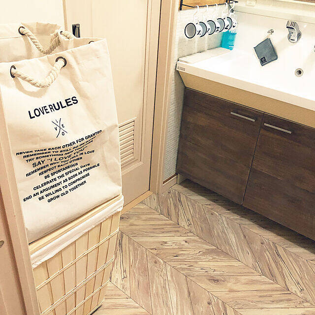 ホワイトで統一された、_navy_homeさんのランドリーアイテムたち。こちらで紹介されていたのは、スタンドにランドリーバッグを下げる形で使用するタイプのものでした。軽量で折り畳み可能なので、使用しないときはコンパクトに収納できるのがうれしいですね。