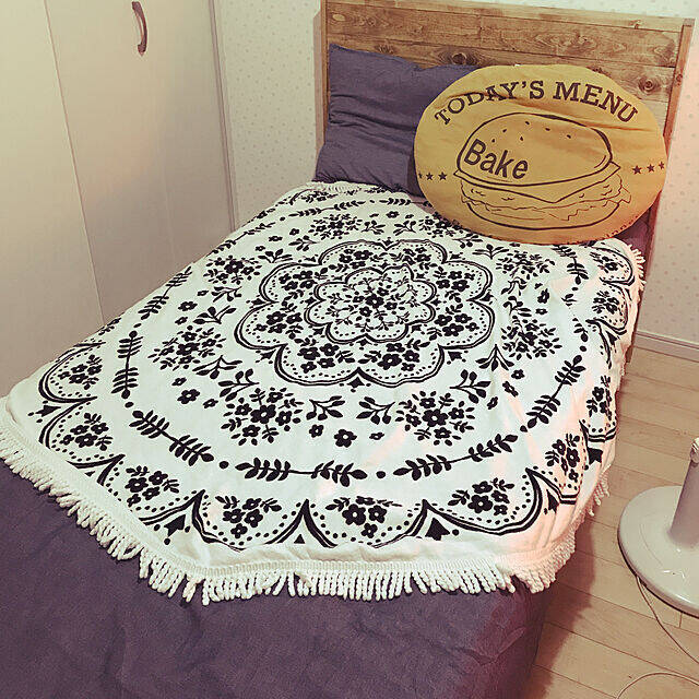 こちらのユーザーさんは、SPF材を使ってヘッドボードをDIYしています。素材のよさが感じられる、男前な味のある仕上がりですね。ビーチ風のラウンドタオルやクッションとも相性抜群です☆