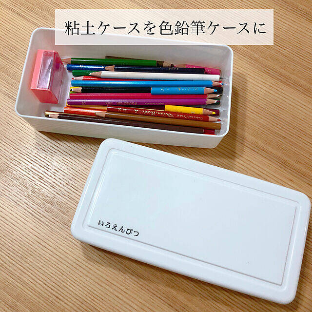 kotokoさんは、ダイソーの粘土ケースを色鉛筆ケースに使っています。開け閉めしやすくて、角もないので小さなお子さんでも使いやすいのだそうです。そのまままとめて入れるだけなので、お片付けも楽にできるのもいいポイントですね。