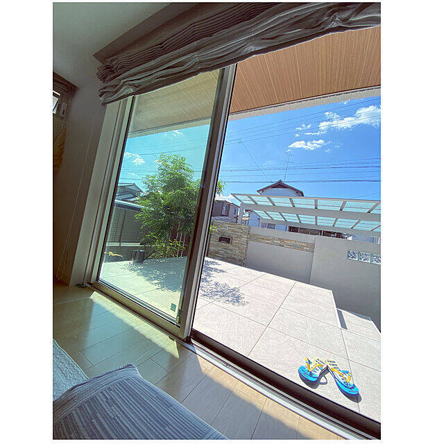 明るいカラーのタイルデッキを取り入れたユーザーさんです。天気の良い日は、タイルに光が反射してお部屋の中まで明るくなるそうです。室内との段差がないように設置されているので、出入りがしやすいのもポイント。大開口の窓からたっぷりの日差しが入り、心地良さそうです。