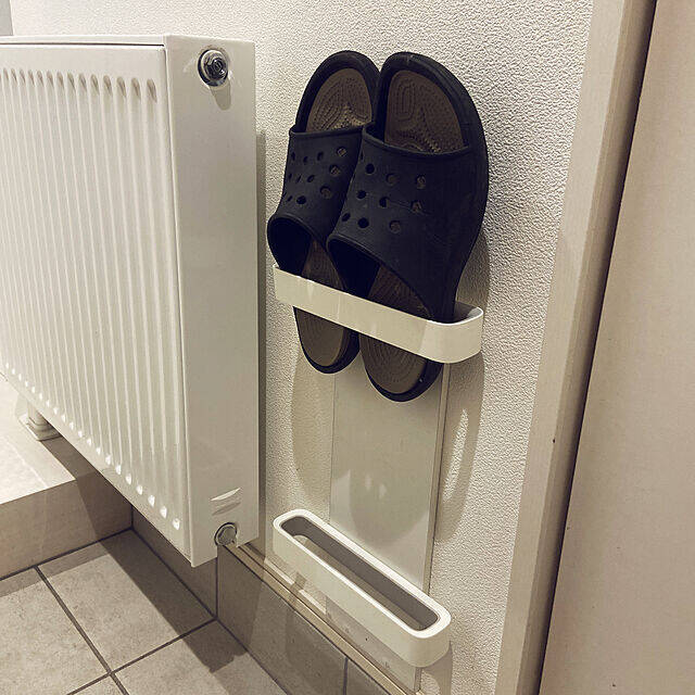 シンプルで安定感のある、山崎実業の床置きタイプのスリッパラック。viva-itoさんはテラス用のサンダルを収納するのに活用されています。強風でサンダルが転がることもなく、見た目もすっきりしたそうです。立てて収納することで、多少濡れても乾きが早そうです。