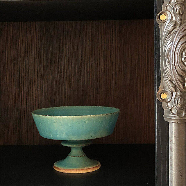 kikomocoさんはお気に入りの器を、アンティークのガラスカビネットに飾られています。鮮やかなターコイズブルーの器がシックなカラーに映え、デザイン性のあるグレモン錠の雰囲気にもマッチしていますね。飾っているだけでもうっとりする器です。