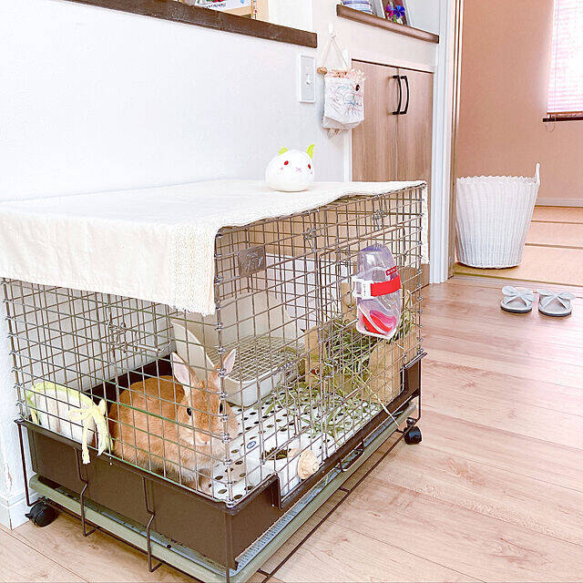 まずご紹介したい3つの実例は、コンパクトなケージをうさぎのお家にしているユーザーさんたちです。お部屋の壁際などにちょこんと置いておけるので、馴染みやすくておすすめです。広さに限りがある場合もうれしいですね。さっそく、実例を見ていきましょう。