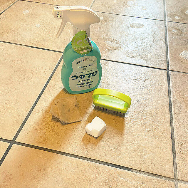 fukoさんは、オキシクリーンを少量の水に溶かし、タイルにかけてたわしで磨かれています。スポンジで水気をとった後、仕上げに乾いた雑巾で拭かれてお掃除完了です。家中のいろんな場所のお掃除や、衣類の漂白などにも活用できるオキシクリーン。汚れ別に使い分けて、あらゆるお掃除に活用したいアイテムです。
