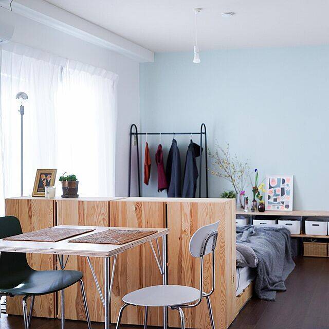 house_ismrさんご夫婦がつくり出すワンルームは、余白にセンスを感じるナチュラルでシンプルな空間です。家具の質感やデザインはもちろん、そのレイアウトにもご夫婦ならではのこだわりが詰まっていそう。このように雑多さを覚えない素敵な眺めをつくるには、どのような収納を心がけると良いのでしょうか。まずは、house_ismrさんが実践する収納スタイルについてお伺いしていきます。